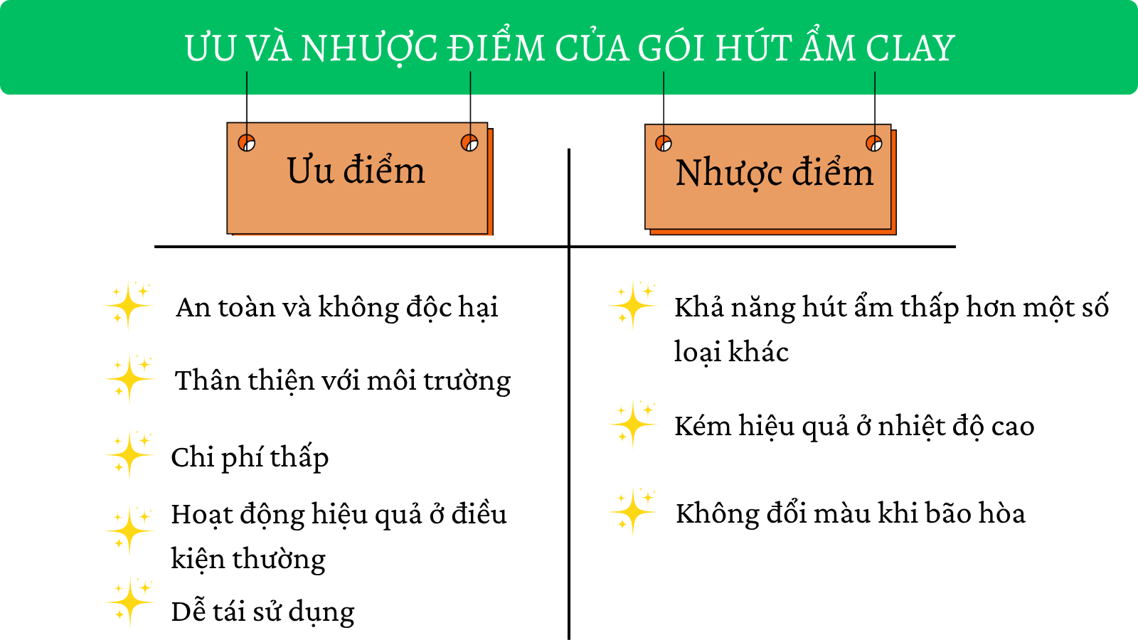 Hạt hút ẩm Clay có khả năng hấp thụ lượng hơi nước tương đương 20–30% trọng lượng của nó.