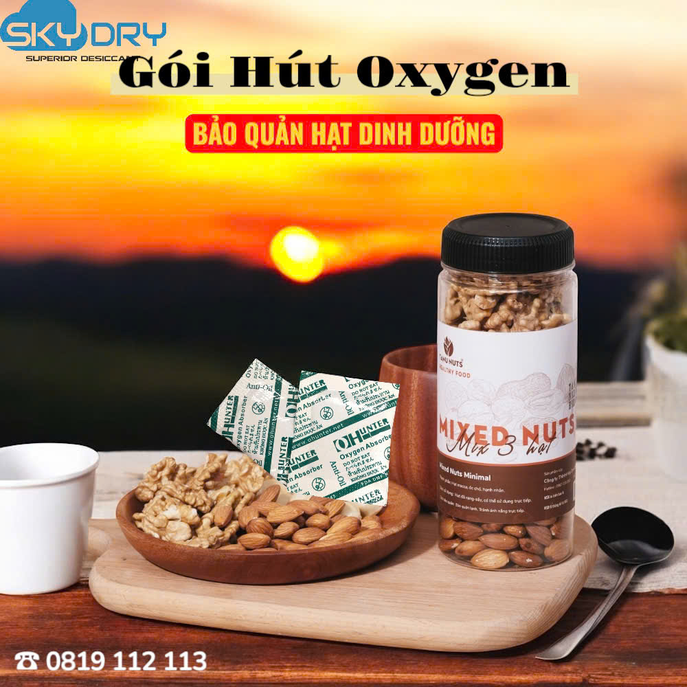 Gói hút khí oxy (hay gói hút ẩm oxygen) giúp bảo vệ thực phẩm đóng gói không bị hư hỏng, ngăn chặn sự phát triển của nấm mốc, côn trùng phân hủy thực phẩm, giúp sản phẩm không bị biến đổi màu sắc, giữ nguyên giá trị dinh dưỡng, mùi vị và chất lượng ban đầu. Sản phẩm được biết đến với nhiều lựa chọn khác nhau như: oxygen absorber hay oxygen scavenger, oxygen remover…